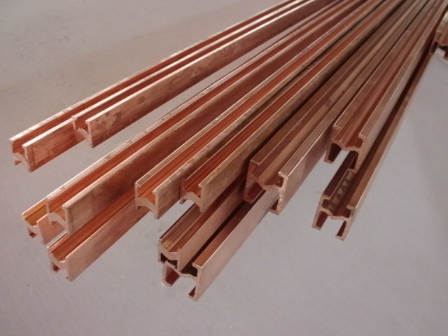 滑触线的主体—导轨本体材料,为适应不同的环境需要,防止大气中二氧化硫、硫化氢、酸、碱以及沿海地区大气中盐雾所含的氯离子,导轨材料选用****导电铜合金,其含铜量≥99.95%。它通过电热挤轧的方式,由****轧机逐次逼近一次性轧制而成。由于导轨本体的截面设计呈“H”形状,故而又通称为H型滑触线。